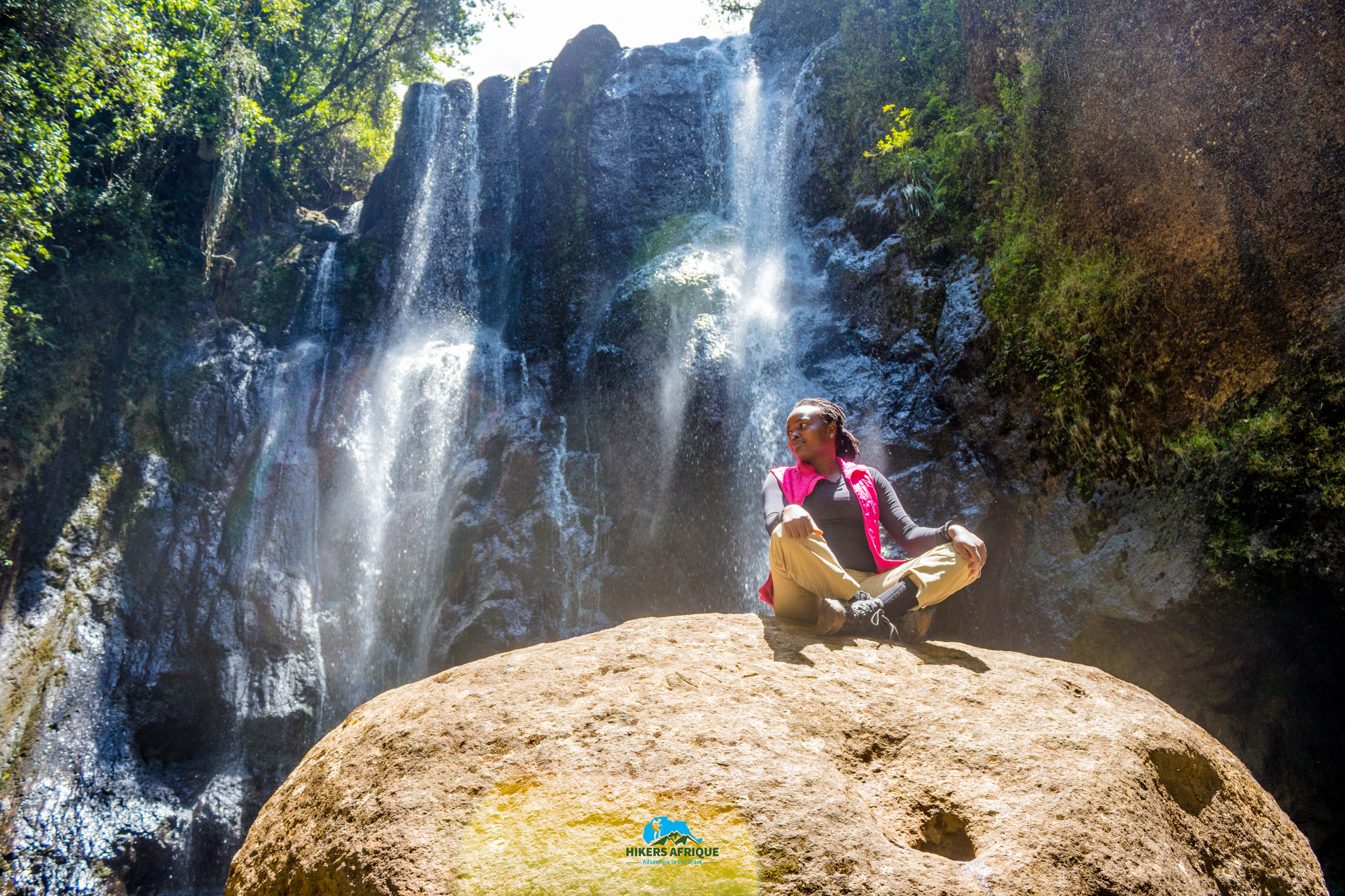After the descent trail, to get to the base of the waterfall one walks for 0.5kms along the river bank. The trail is rocky & rich in different floras & faunas. Imagine walking through a quiet, scenic nature trail with birds chirping in the background and burbling sound of a waterfall which gets louder and louder as you get closer to it. Amazing! Right? This is how the first waterfall welcomes you. To say that the waterfall is beautiful is underrating its beauty, it is gorgeous and it has this effect of making one stare at it with admiration, love and desire to take it all in. After staring at it one is tempted to take a dip in the pool at the base of the waterfall. Now that I’m an pro swimmer thanks to Ngare Ndare, link to Ngar Ndare post👉🏽 https://redemtermaera.travel.blog/2022/04/30/ngare-ndare/, i gave in to this temptation and i don’t regret it.